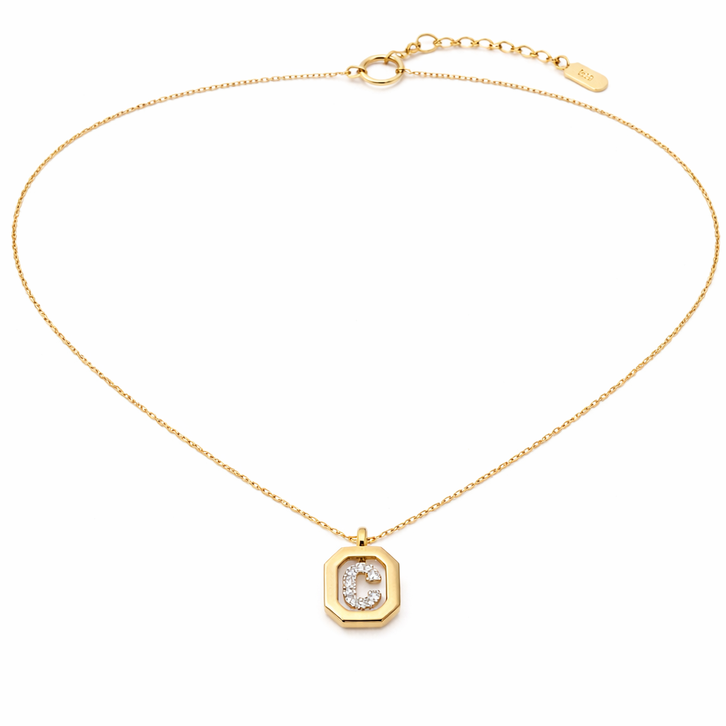 Make it personal with this elegant diamond initial pendant necklace. Designed in a refined octagonal gold frame, the pendant features a sparkling diamond-studded initial at the centre, creating a perfect balance of brilliance and minimalism. Suspended on a delicate gold chain, this piece is ideal for everyday wear while adding a subtle touch of luxury.