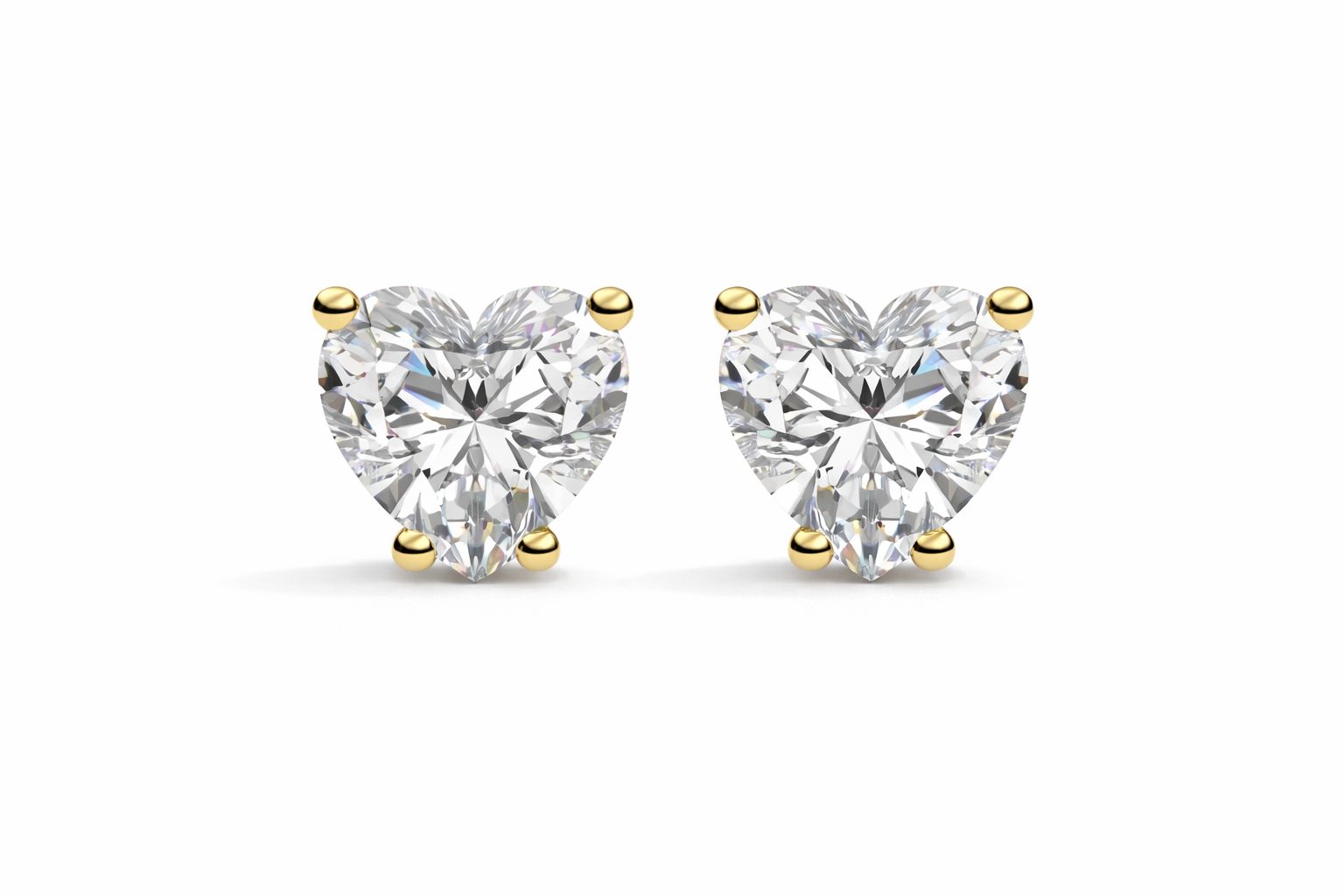 These elegant heart-shaped diamond stud earrings feature brilliant solitaire stones that capture light beautifully from every angle. Set in 14KT hallmarked gold, each diamond is secured with a protective V-tip prong to preserve the delicate heart shape while ensuring long-lasting durability.